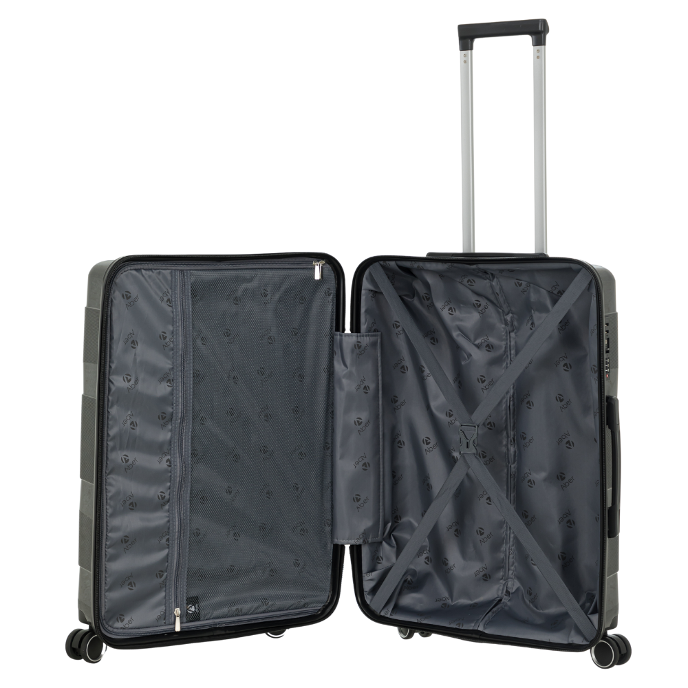 Vải lót: Lớp vải lót được làm từ chất liệu Polyester, dày dặn, chống thấm, chia vali làm 2 ngăn, giúp dễ dàng khi sắp xếp quần áo và đồ dùng các nhân.