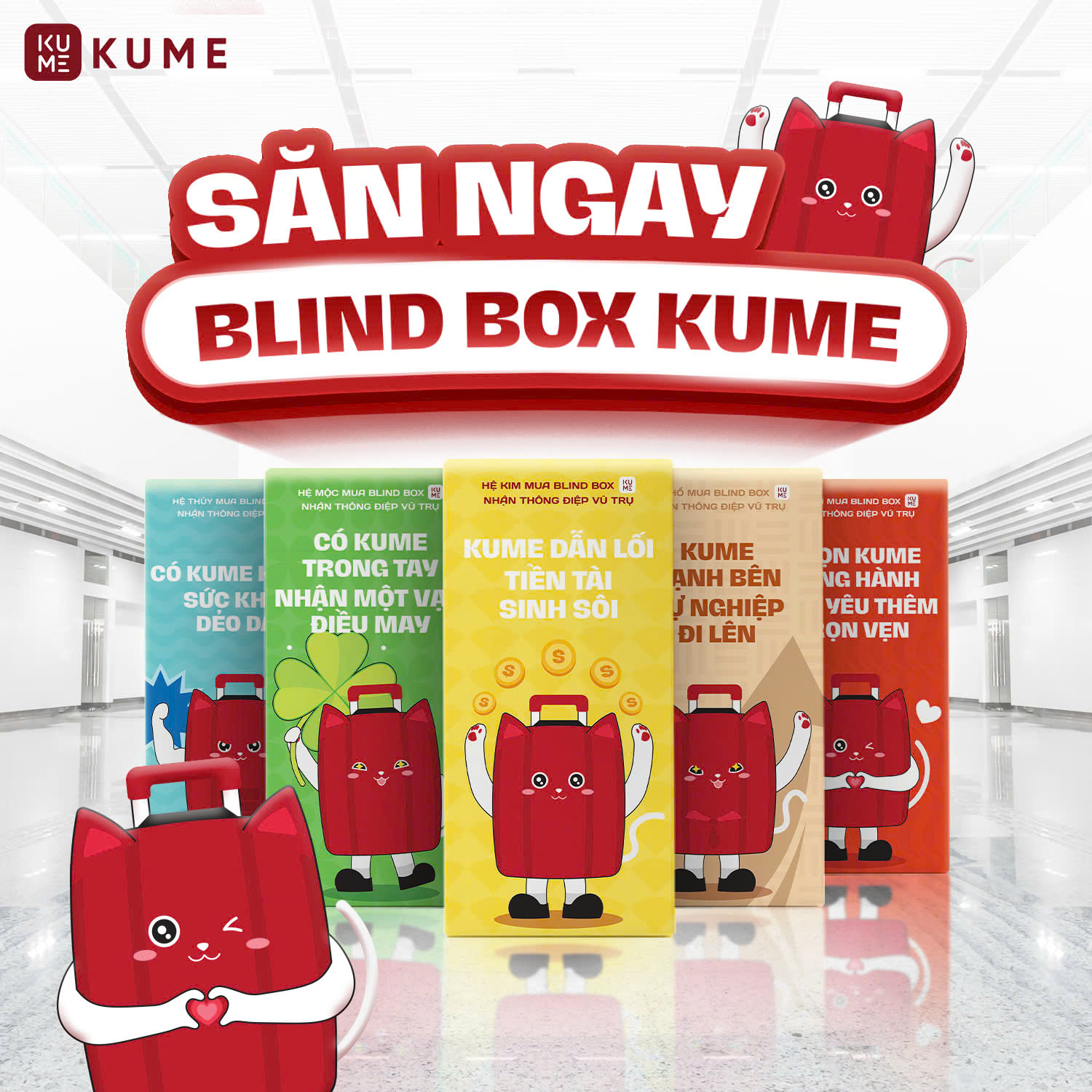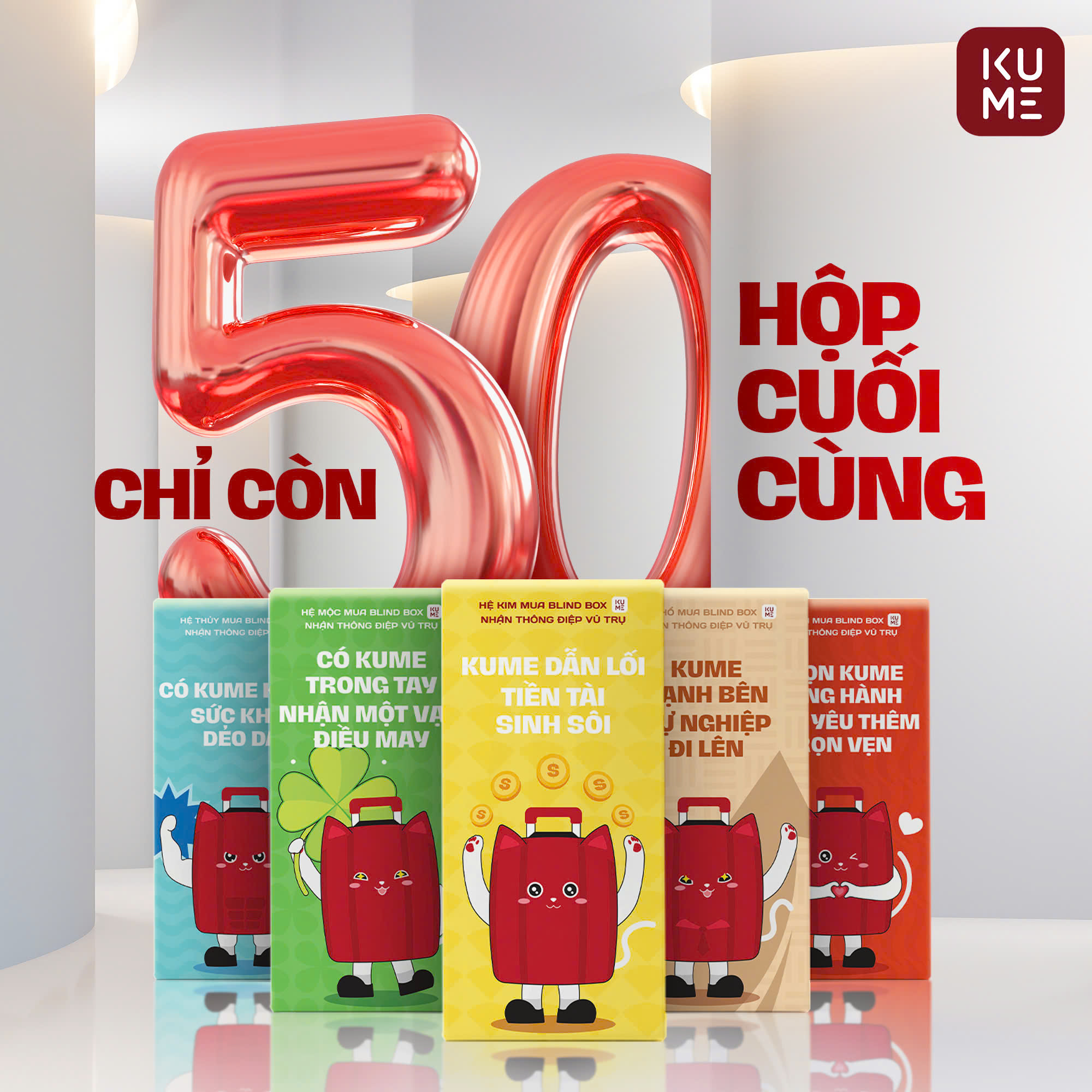 Thay vì những mô hình hoạt họa hay thú bông thì BLIND BOX của KUME là một chiếc hộp chứa đựng các phần quà ngẫu nhiên, được thiết kế với những câu chuyện phong thủy đặc trưng và đầy ý nghĩa. Mỗi hộp đại diện cho một trong năm yếu tố Kim, Mộc, Thủy, Hỏa, Thổ, mang theo những thông điệp may mắn và thịnh vượng, giúp người sở hữu không chỉ nhận được món quà vật chất mà còn nhận được giá trị tinh thần vô cùng to lớn.
