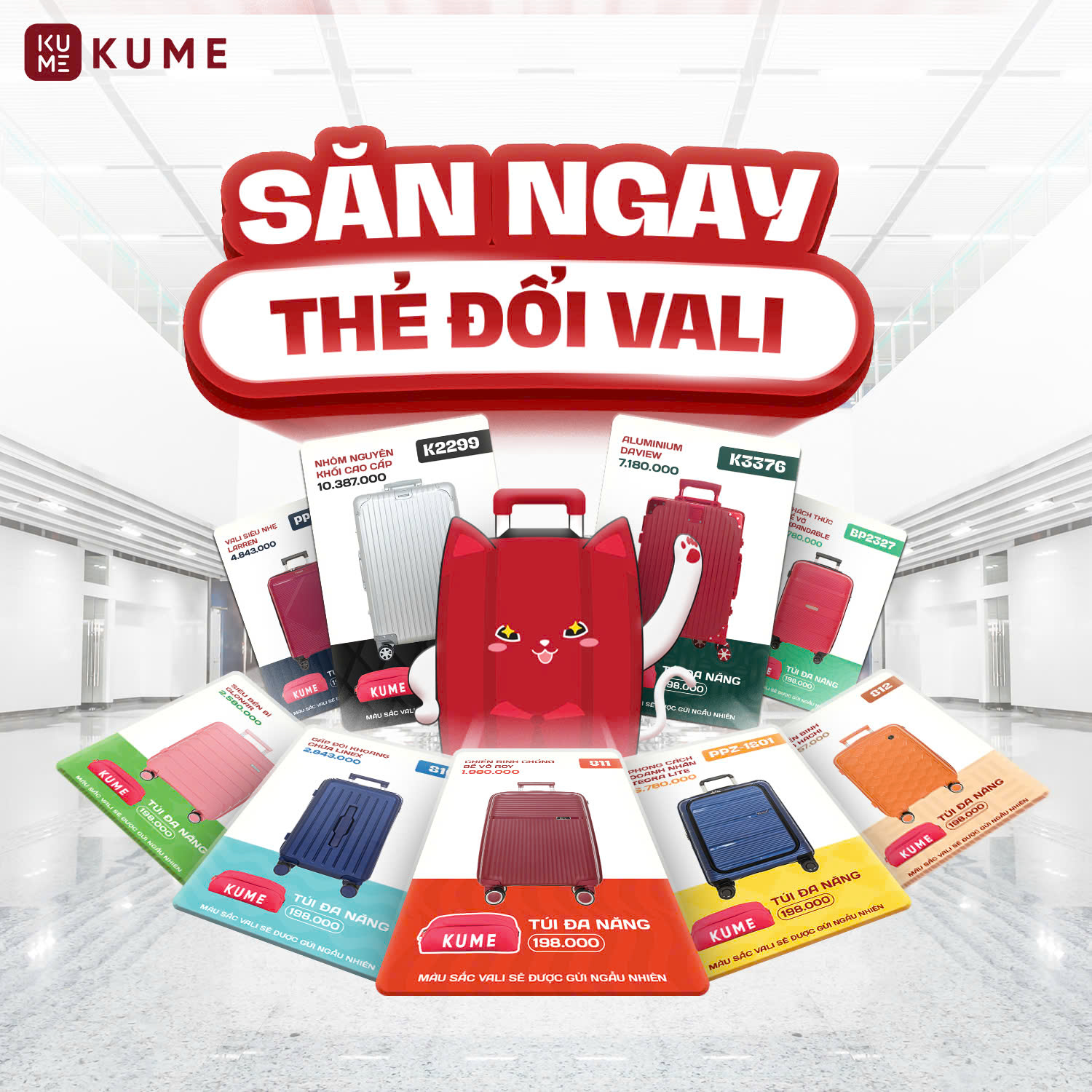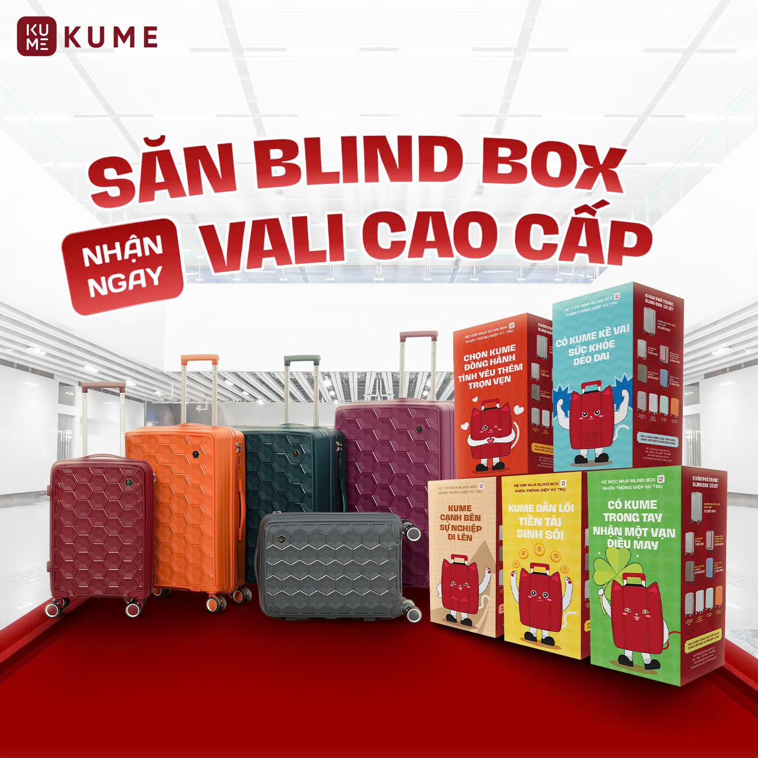 Để sở hữu một chiếc BLIND BOX KUME, khách hàng chỉ cần đến cửa hàng, mua vali với hóa đơn từ 2.999K và có thể mua ngay một hộp BLIND BOX với giá ưu đãi 499K. Với một mức giá hợp lý, bạn không chỉ nhận được những quà tặng chất lượng, mà còn có cơ hội thử vận may với các phần quà giá trị cao lên đến 10 triệu đồng và khám phá các câu chuyện về phong thủy vô cùng ý nghĩa.