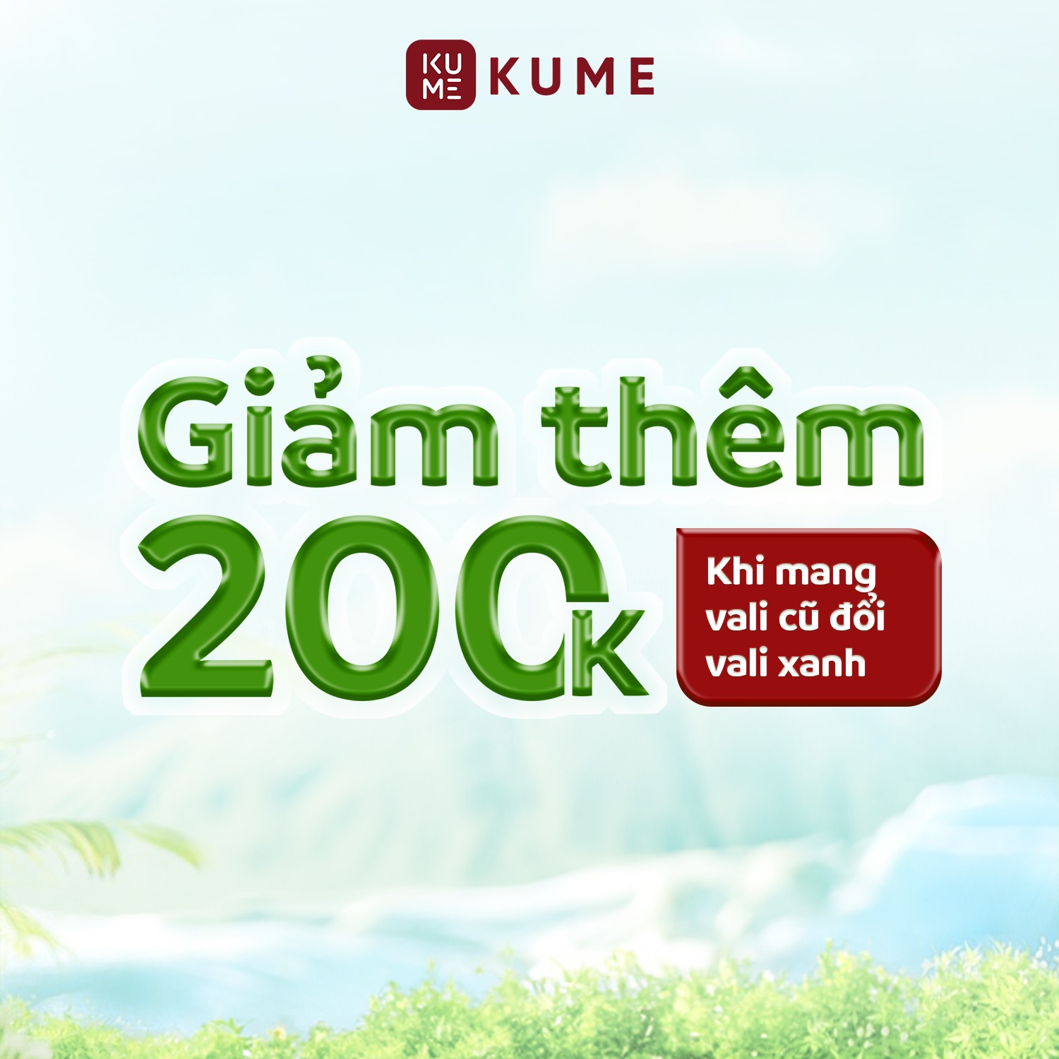 Nhanh tay sở hữu vali xanh với những ưu đãi hấp dẫn từ KUME! Hãy hành động từ những điều nhỏ nhất ngay hôm nay để góp phần tạo ra một thế giới xanh hơn cho chính chúng ta và các thế hệ tương lai!