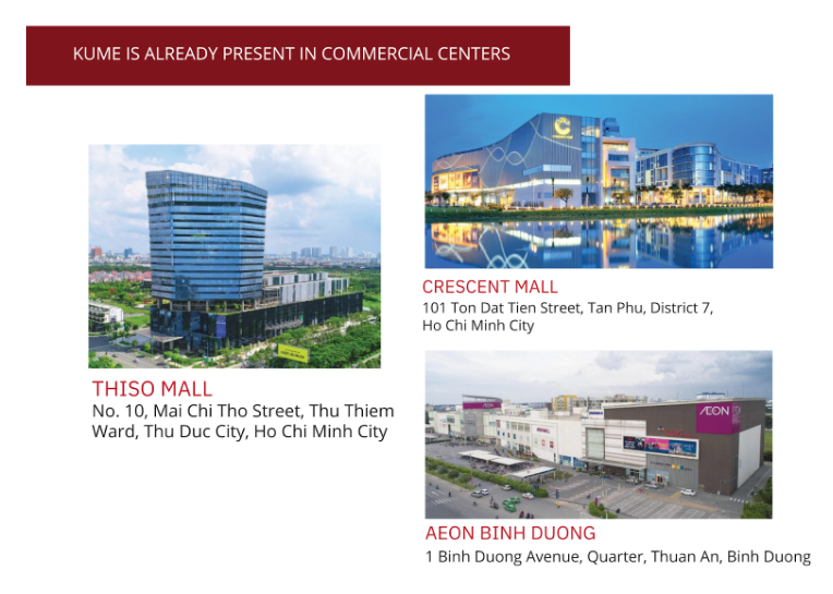 Thuộc tập đoàn Vạn Thành Thái, KUME hiện sở hữu 13 cửa hàng chuyên về hành lý du lịch. Mới đây, chúng tôi vừa khai trương thêm một cửa hàng mới tại Thiso Mall, sẵn sàng phục vụ quý khách hàng.
